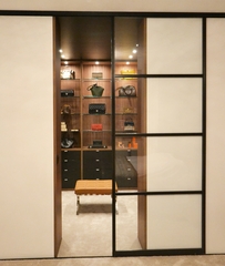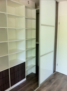 De inloopkast kan dan bijv. met luxe schuifdeuren al dan niet in combinatie met vaste kamerhoge panelen worden afgescheiden van de slaapkamer.