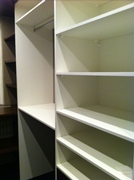 De ruimte hoeft niet groot te zijn: van een relatief kleine ruimte kan d.m.v. een efficiënte indeling al een prachtige inloopkast worden gemaakt.