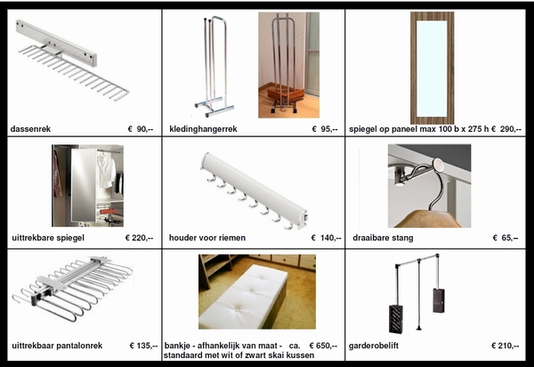 Met behulp van kastaccessoires kunt u – naast het luxe effect van dit soort onderdelen – de ruimte in uw kast nog efficiënter benutten.