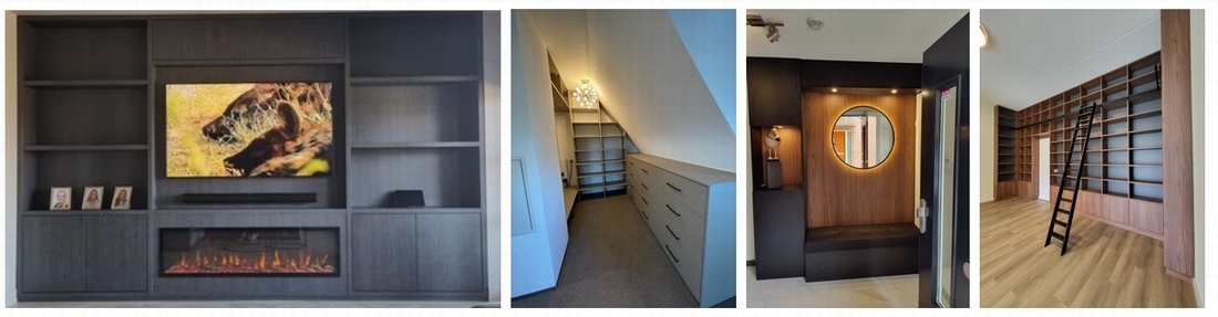 Denk hierbij aan kastenwanden met schuifdeuren, draaideurkasten, kasten voor de wasmachine/droger, halkasten, maar bijvoorbeeld ook kamerhoge ingebouwde boekenkasten, cinewalls en kantoormeubilair.