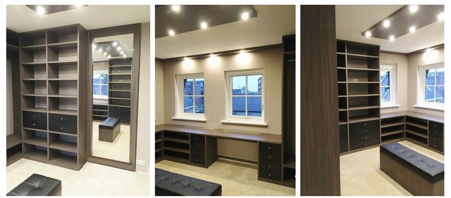 Tevens is deze opstelling een fraaie oplossing indien er zich een raam halverwege de ruimte van de inloopkast en de slaapkamer bevindt.
