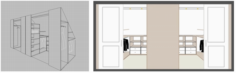 Voorbeeld 1 : inloopkast/”gewone” kast met schuifdeuren.