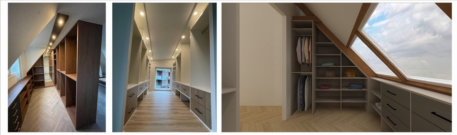 Hieronder ziet u nog meer prachtige voorbeelden van inloopkasten onder een schuin dak.